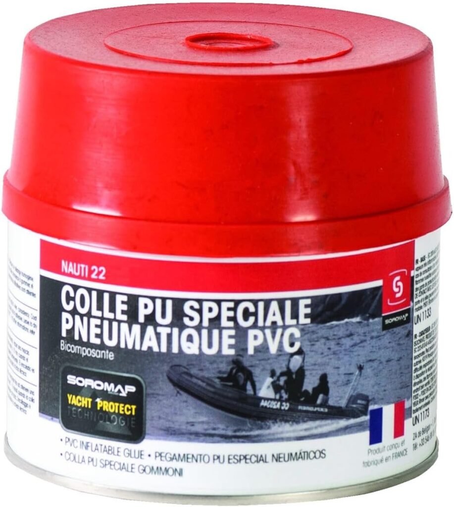 | #2 Soromap Nauticolle 22 PU | Bi-composant | PVC & Néoprène/Hypalon | 24-48h | À mélanger | Excellente (marine) | ~25-30€ (250 ml) |